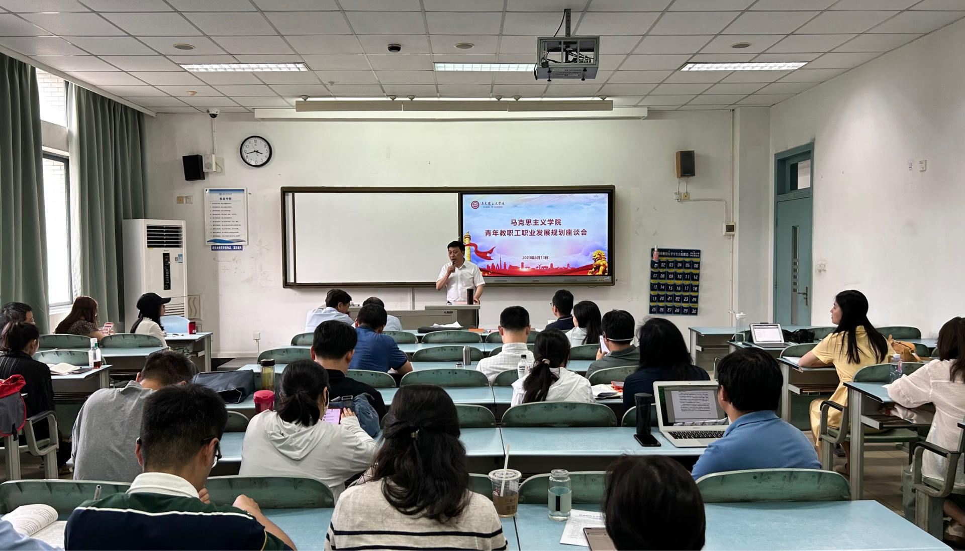 2023年6月13日下午,英国365上市公司在经世楼B404举行青年教职工职业发展规划座谈会。会议由经理唐晓勇主持,公司党委教师工作部副部长周立成莅临指导座谈会,学院领导班子、教授委员会、规划辅导人以及全体青年教职工参加会议。
