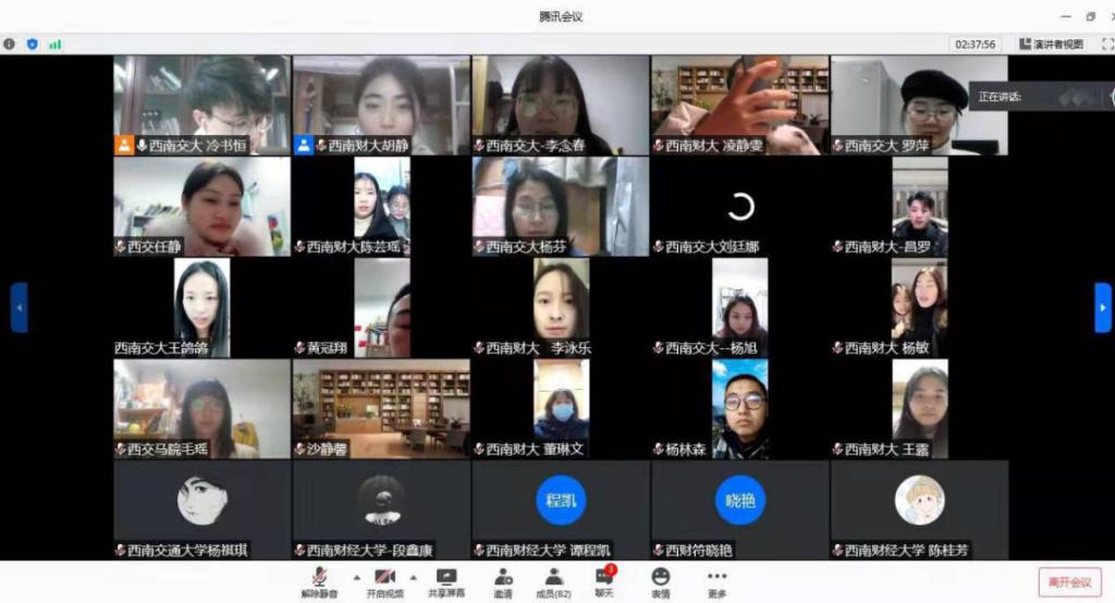 本次活动通过西南交大马院19级硕士班与西南财大马院19级硕士班的集体学习、线上讨论的方式,加强了两校之间的交流共建,促进两院员工深入学习党的十九届五中全会精神,把握会议精神的丰富内涵和核心要义,切实增强贯彻落实政治自觉、思想自觉、行动自觉,践行共产党人的初心与使命。