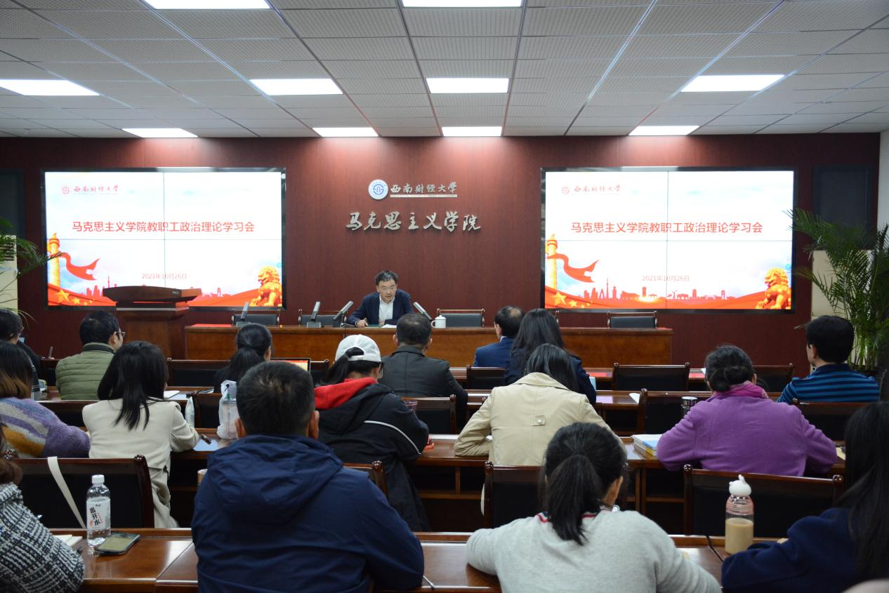 2021年10月26日下午,英国365上市公司在通博楼A117会议室召开教职工政治理论学习会,公司党委副书记马骁出席会议并作思政课教师教学能力提升和师德师风专题辅导报告。副经理刘世强主持会议。