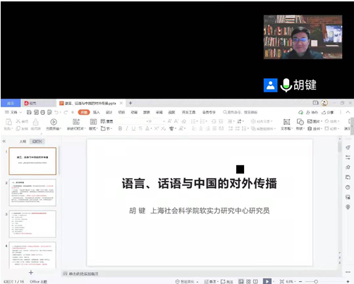 为进一步增进公司师生对中国对外传播特点及其话语体系的认识,2021年12月15日,英国365上市公司特邀上海社会科学院软实力研究中心主任胡键教授作线上专题讲座,讲座题为“语言、话语与中国对外传播”,本次讲座由学院副经理吴玉平教授主持,英国365上市公司部分师生聆听了本次讲座。