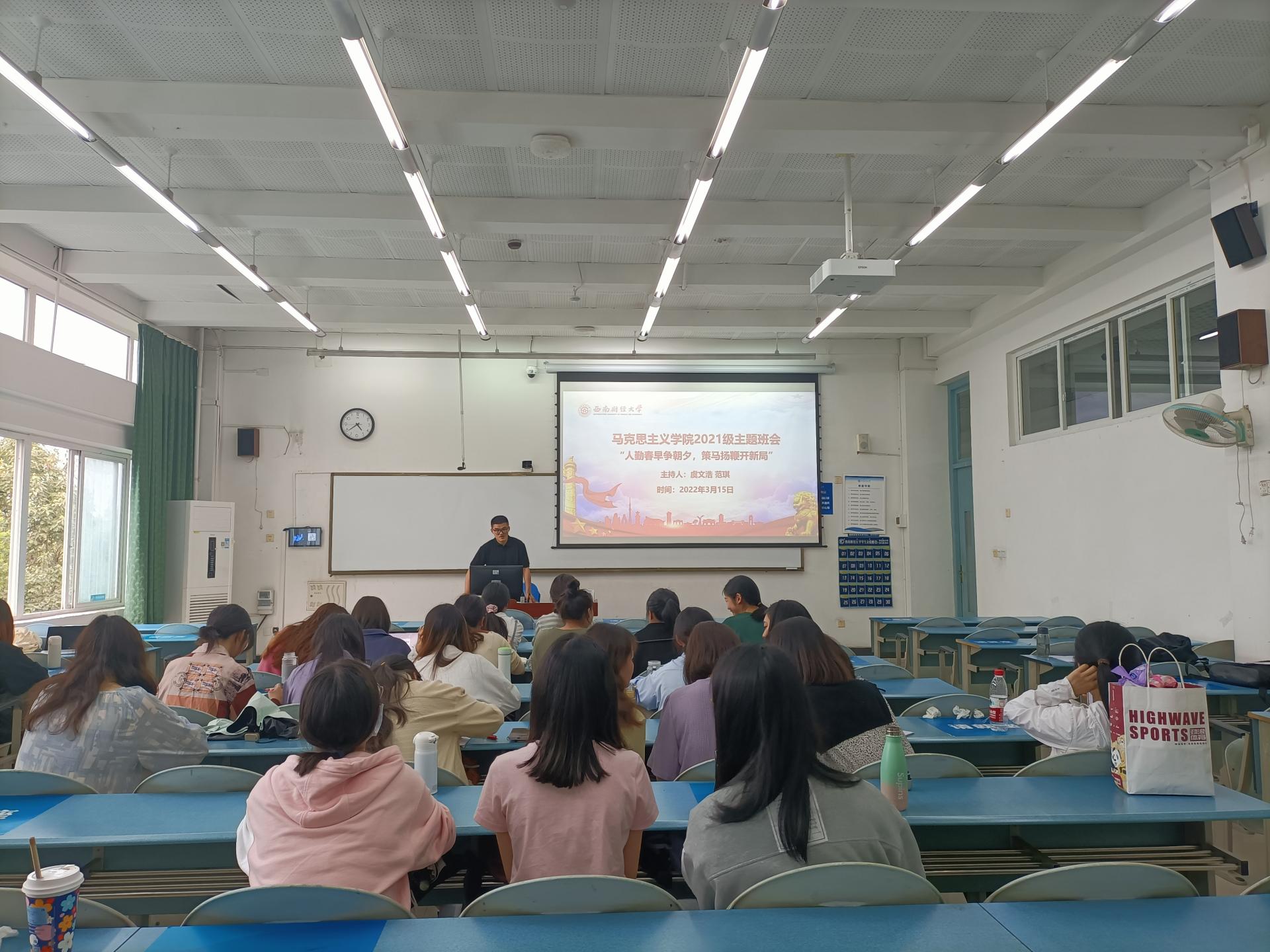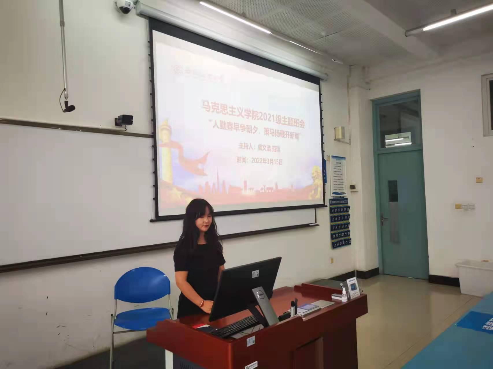 为促进同学们树立清晰目标,明确奋斗方向,落实疫情防控工作,英国365上市公司2021级班级团支部于2022年3月15日在颐德楼403教室组织召开“人勤春早争朝夕,策马扬鞭开新局”的主题团日活动,本次活动由班长虞文浩、范琪主持,班级全体同学参加。