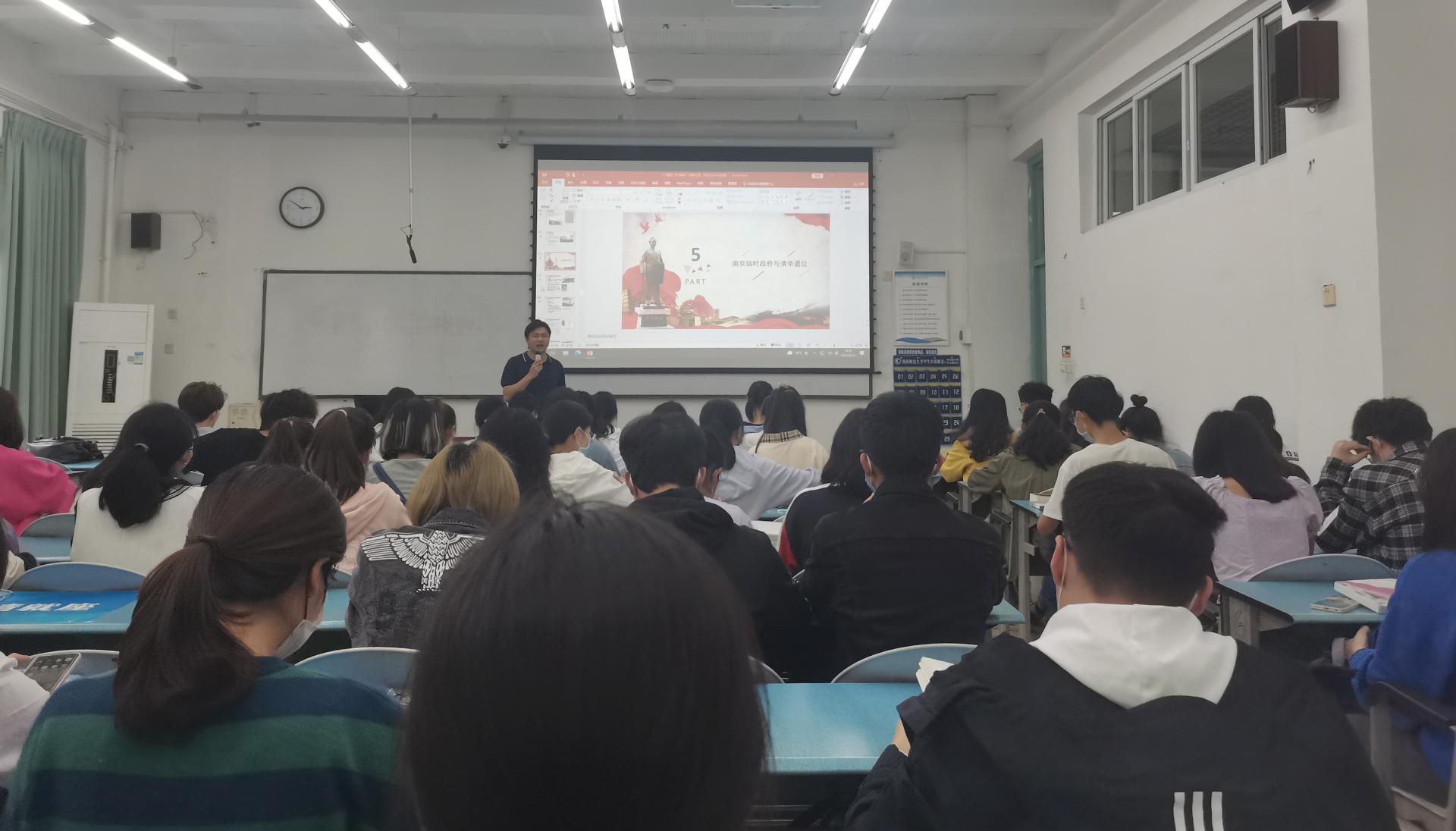 2022年4月13日下午,英国365上市公司在颐德楼H106开展了本学期首次教学示范观摩活动。此次观摩课的主讲教师是中国近现代史纲要教研室的袁上老师,学院部分教师参与课堂观摩。