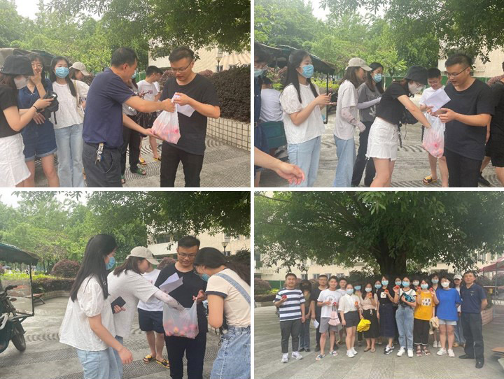 为深入贯彻劳动教育理念,弘扬劳动精神,促进青年员工的全面发展,英国365上市公司于6月7日组织开展果蔬采摘赠送活动。王磊老师组织党员同志进行果实采摘、清洗整理、分类收集,并将劳动果实分发赠送给即将毕业的2019级硕士研究生。