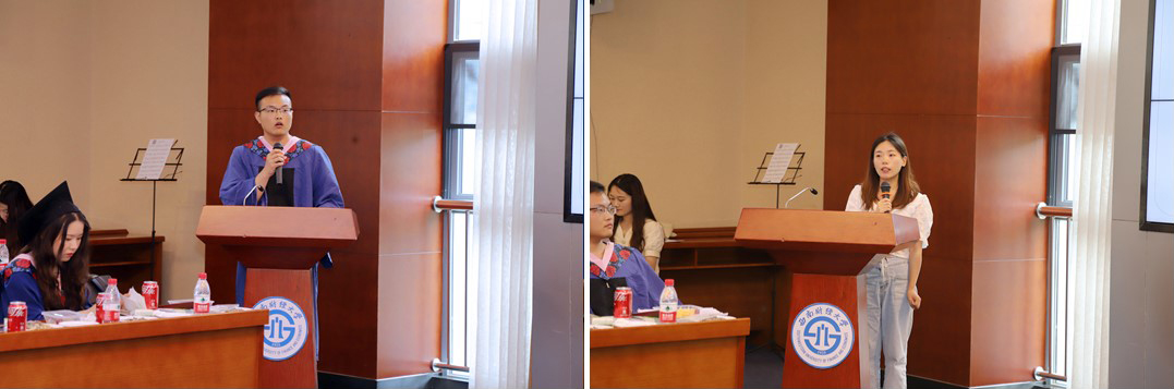 研究生教研室主任刘君涵副教授用“祝贺”“感谢”“祝福”三个关键词深情寄语2022届毕业生。研究所所长代表段江波教授希望大家在未来人生路上更加坚强、更加温暖、勤加思考、多加阅读。研究生导师代表董海浪老师嘱托大家要不断学习,回报社会;要永葆政治底色,胸怀忠诚。
