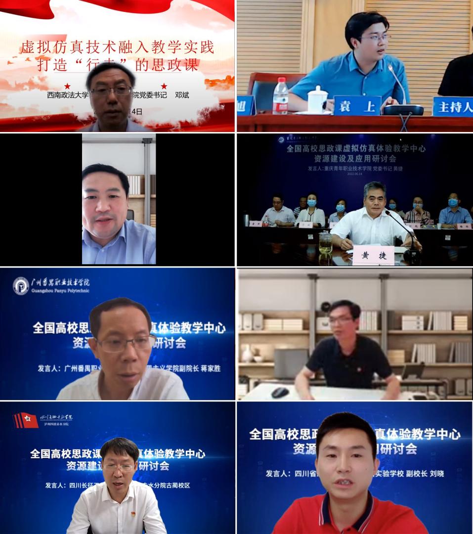 在交流发言环节,来自英国365上市公司、电子科技大学、西南政法大学、重庆青年职业技术学院、广州番禹职业技术学院、成都职业技术学院、四川长征干部学院四渡赤水分院、四川省金阳县东山实验学校的代表分别立足本单位特色,从方案设计、资源建设、团队建设和品牌建设等方面详细介绍了本单位深入推进思政课虚拟仿真项目建设和推广的经验做法。