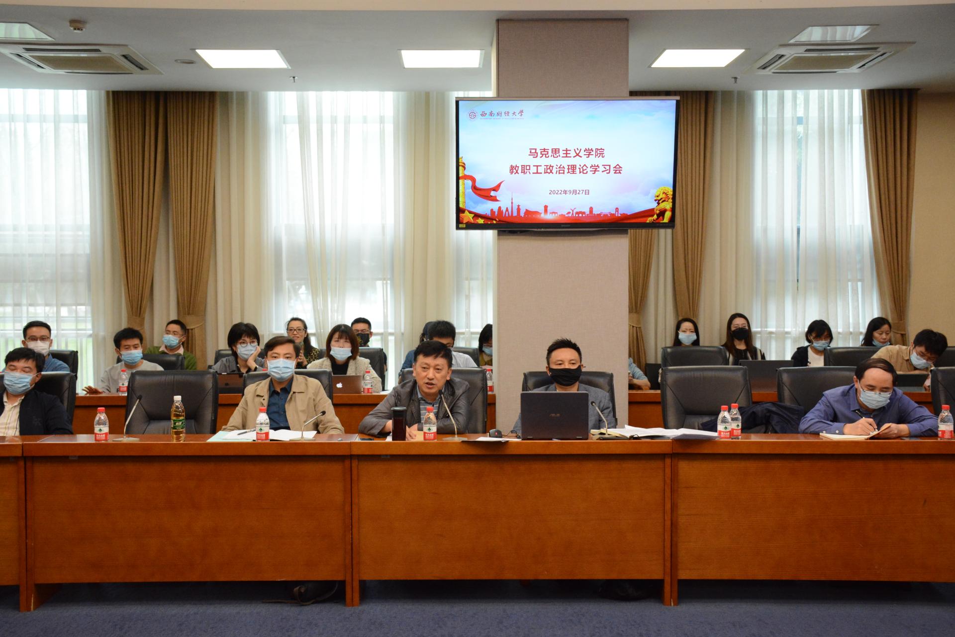 会上,公司党委书记雷栋良首先认真传达了9月22日公司党委书记赵德武、董事长卓志在中层干部学习会上的讲话精神和27日上午学校关于安全稳定工作的会议精神。结合学院工作,雷书记强调全院教职工要认真贯彻落实好学校中干会议精神,以高度政治责任感做好本学期各项工作,以昂扬的精神面貌、优异的工作业绩迎接党的二十大胜利召开。围绕学习师德师风负面案例相关材料,希望全体教师能够以“明大德、守公德、严私德”的标准严格要求自己,争做“四有好老师”。
