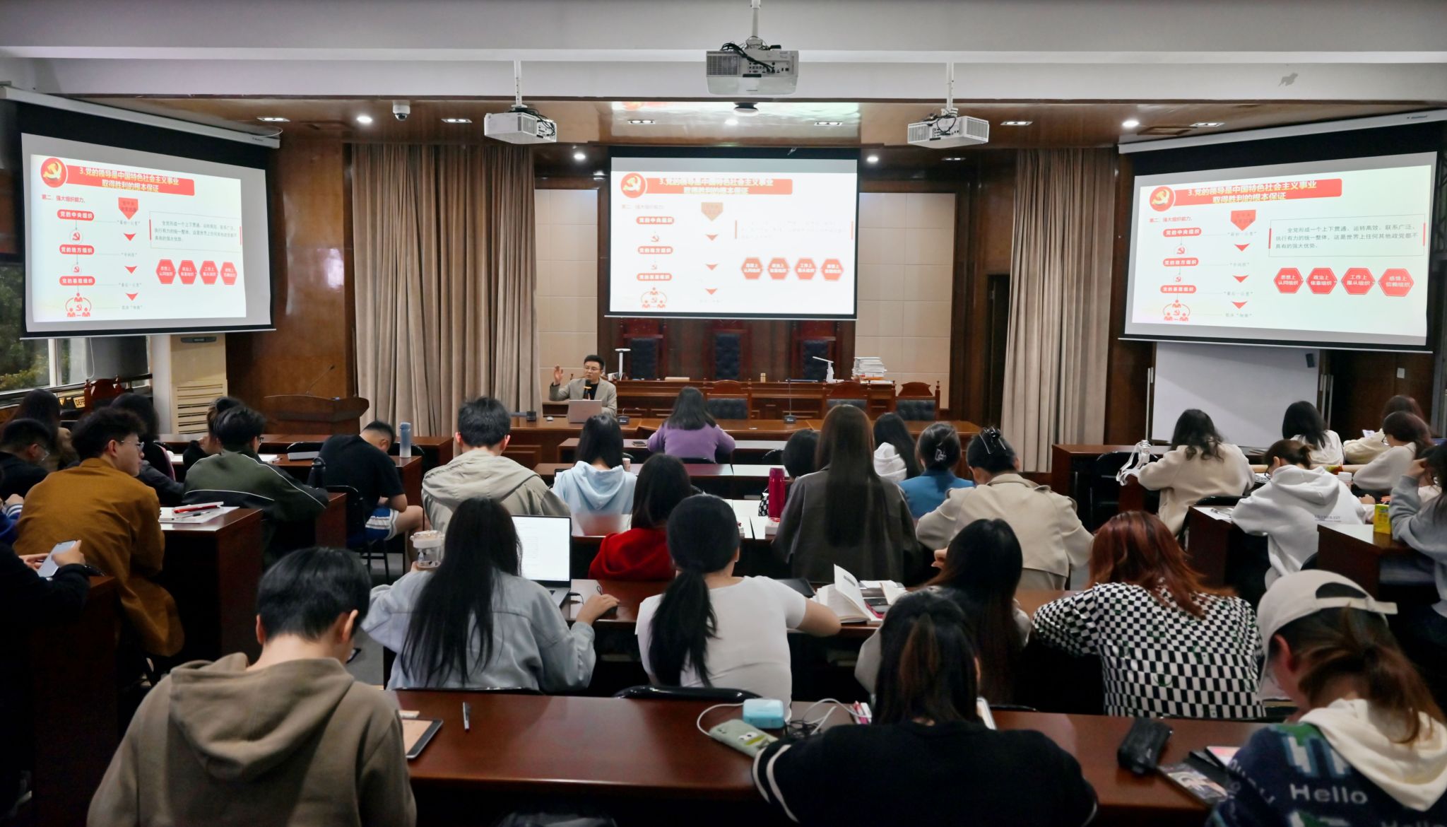 4月9日下午,英国365上市公司分党校第18期党员发展对象培训班开班式于柳林校区模拟法庭举行。公司党委书记雷栋良以“坚持人民至上 勇于实干担当——中国共产党性质和宗旨”为主题为学员讲党课(思想政治理论课)。