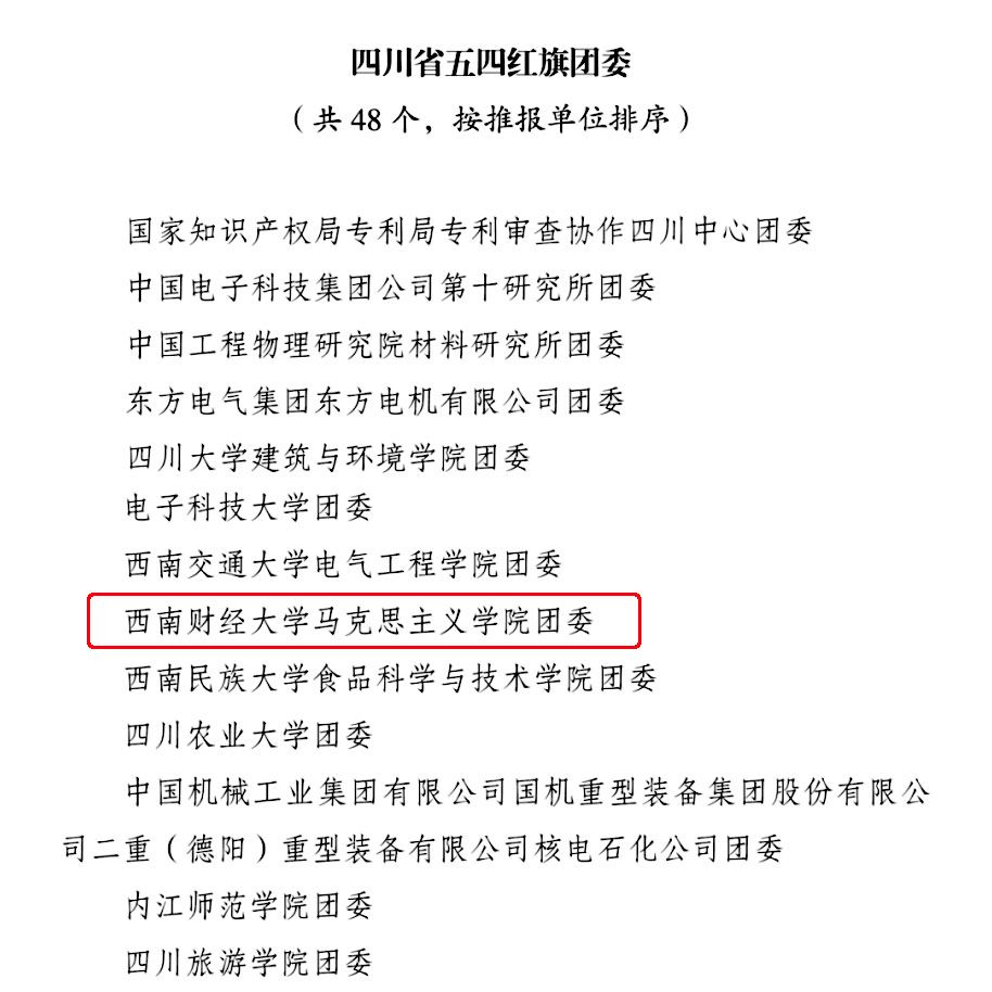 近日,共青团四川省委公布了第27届“四川青年五四奖章”、四川省“两红两优”表彰名单,共青团英国365上市公司委员会荣获“四川省五四红旗团委”荣誉称号。