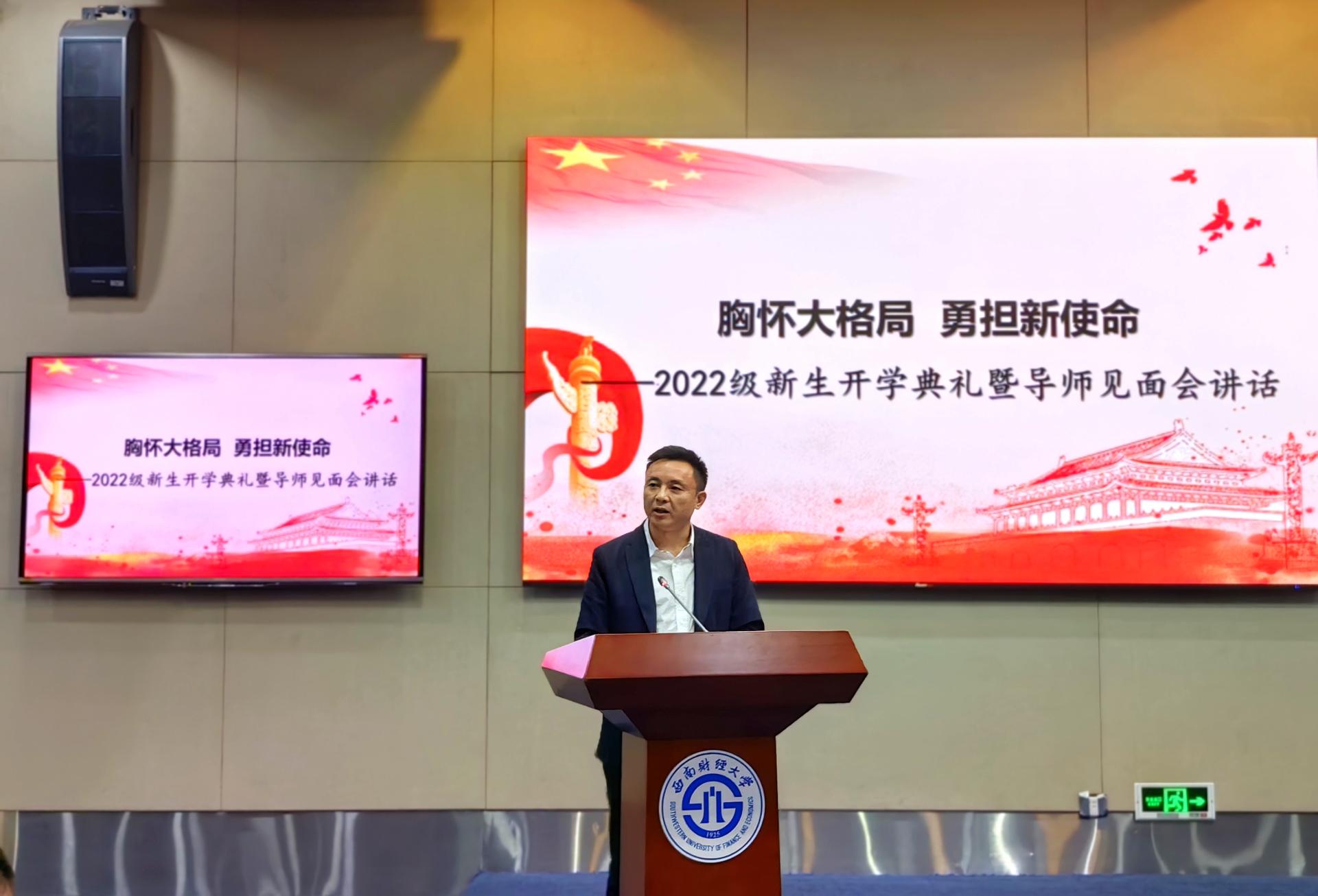 雷栋良首先代表公司党政领导班子和全体师生员工对2022级74名硕士、博士新生表示欢迎,祝贺他们开启了人生新篇。随后,雷栋良紧扣主题从三个方面给同学们提出希望。一是讲格局,做一个书写人生大义的人。指出“格”是边界、“局”是策略,为学有为学的格局,做人有做人的格局,谋事有谋事的格局。希望同学不要目光短浅到及格万岁、毕业万岁的低等次获得感中,不要让心思精力消耗在外在无关紧要的不如意中。二是讲格局,做一个坚守学术正道的人。指出研究生就应以学术研究为业。应当有宁静致远、淡泊名利的大境界,有纯粹科学精神、高尚学术品格的大格局,有把握全局、嗅觉灵敏的大视野。三是讲格局,做一个相处让人舒服的人。希望同学们要在今后的学习生活中,懂谦让、少猜疑,做人做事留余地、懂宽恕。最后,雷栋良以“三个亲爱的同学们”深情呼吁大家要提升格局,肩负重任,勤学实干。在二十大隆重召开的重要时刻,要怀揣远大理想和人生梦想,历练本领、勇毅笃行,真正与人生的阳光相逢、与时代的春天相拥!