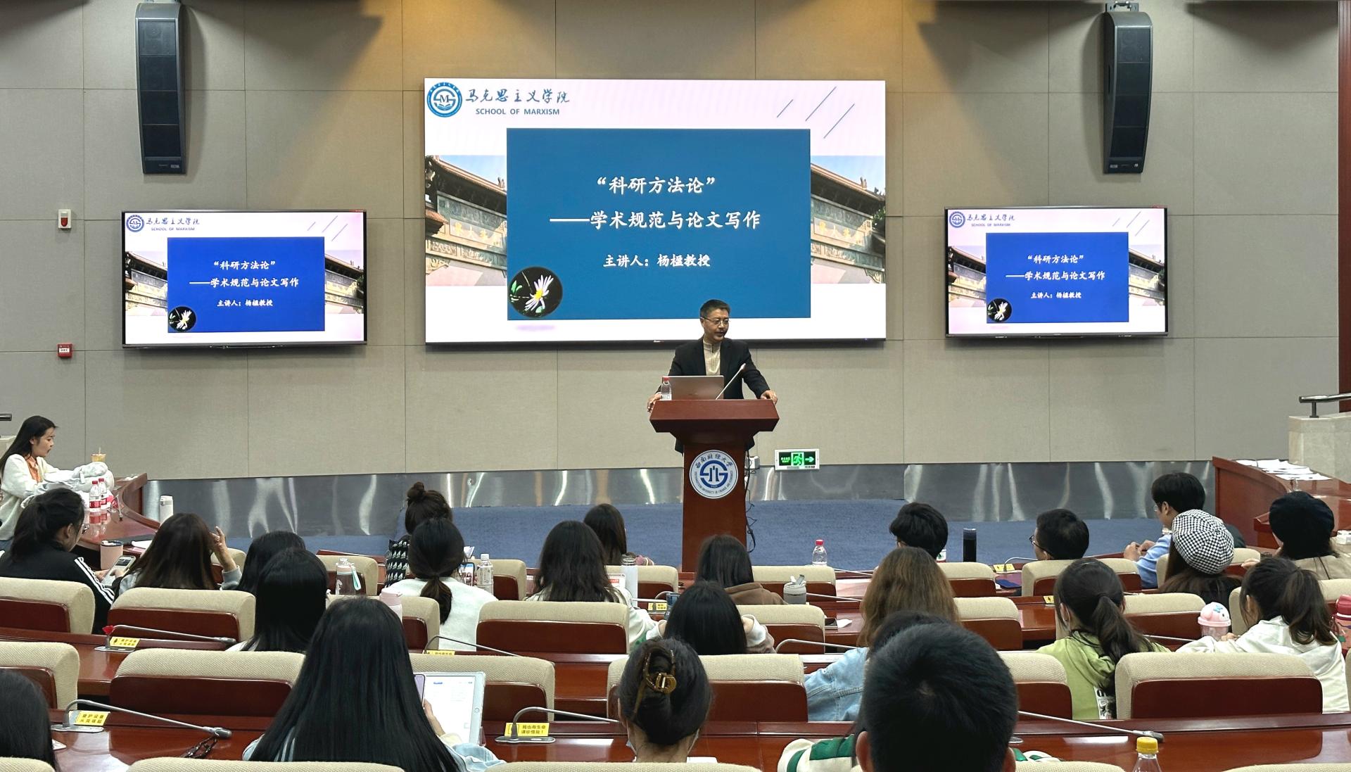 为明确学术规范,培养学术思维,提升学术能力,英国365上市公司于11月3日晚邀请杨楹教授在弘远楼101教室作了主题为“科研方法论——学术规范与论文写作”的专题讲座。讲座由英国365上市公司研究生会学术部部长张春懿主持,英国365上市公司100余名同学参加了此次讲座。