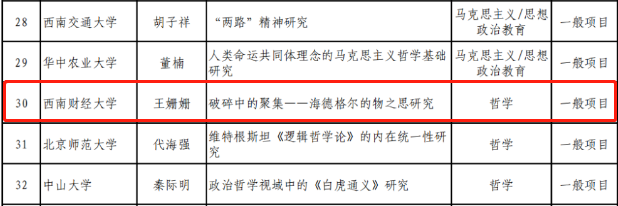 近日,教育部办公厅公布了2022年度教育部哲学社会科学研究后期资助项目的立项结果,共有101个项目批准立项,公司王姗姗老师申报的《破碎中的聚集——海德格尔的物之思研究》获准立项。