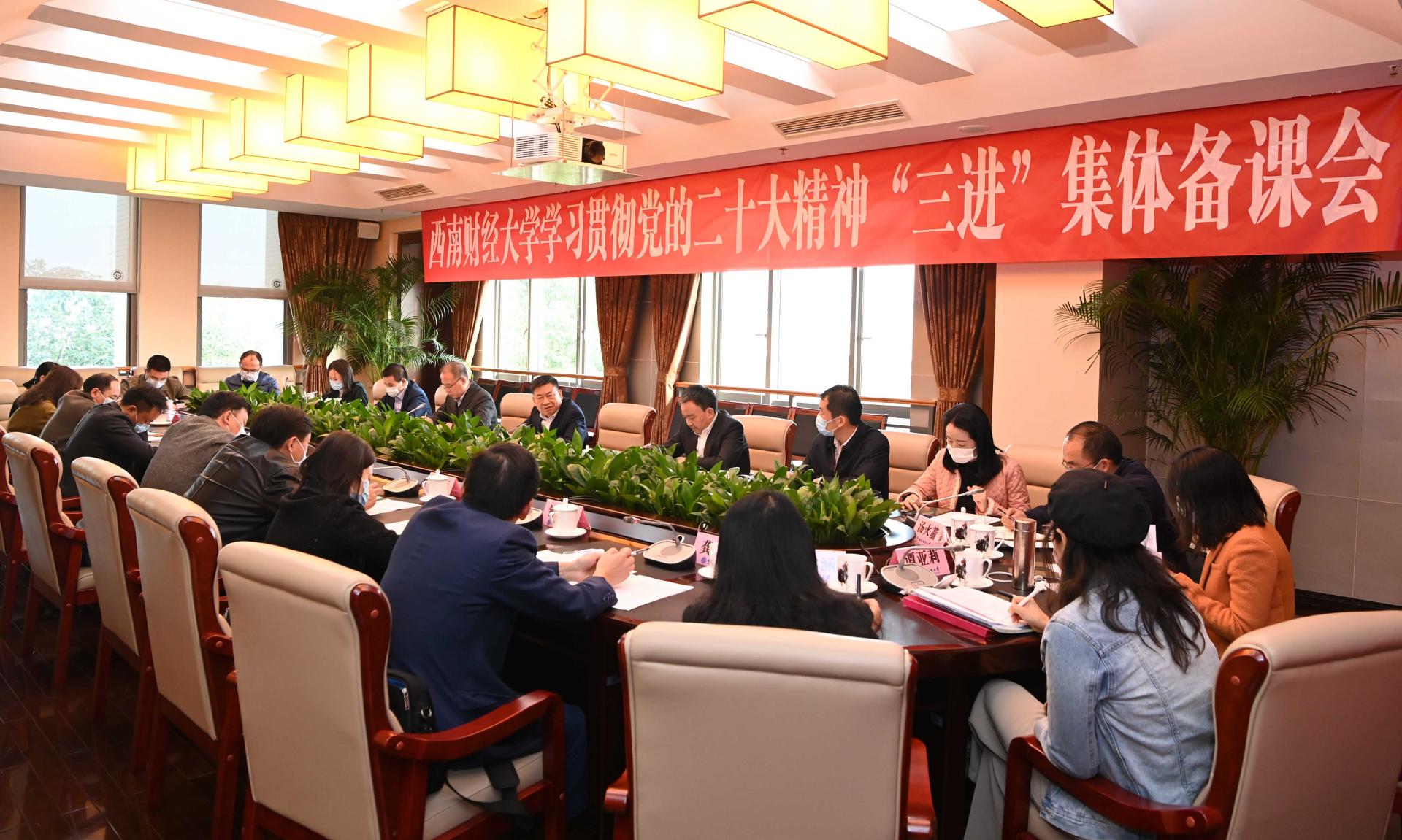 11月16日,学校召开学习贯彻党的二十大精神“三进”集体备课会。党委书记、集体备课组组长赵德武出席并讲话,强调要充分发挥教师队伍主力军、课程教材主阵地、课堂教学主渠道作用,以扎实有力举措抓好党的二十大精神进教材进课堂进头脑,坚定推动党的二十大决策部署在西南财大落地生根、开花结果。