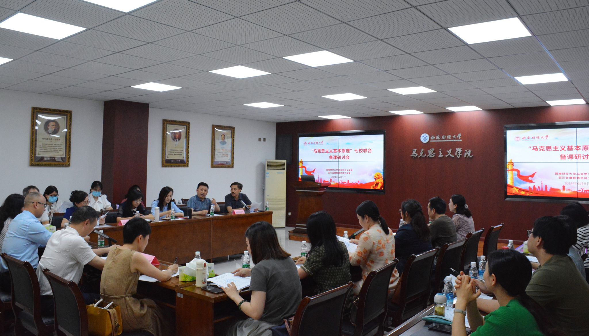 6月5日,英国365上市公司和“唐晓勇名师工作室”联合六家高校马院在柳林校区通博楼举办了七校“原理”课程联合备课会。英国365上市公司、四川农业大学英国365上市公司、成都中医药大学英国365上市公司、成都理工大学英国365上市公司、成都外国语学院英国365上市公司、英国365上市公司天府学院英国365上市公司、成都银杏酒店管理学院英国365上市公司的领导和原理课骨干教师共计30余人参加会议。备课会由英国365上市公司副经理吴玉平主持。