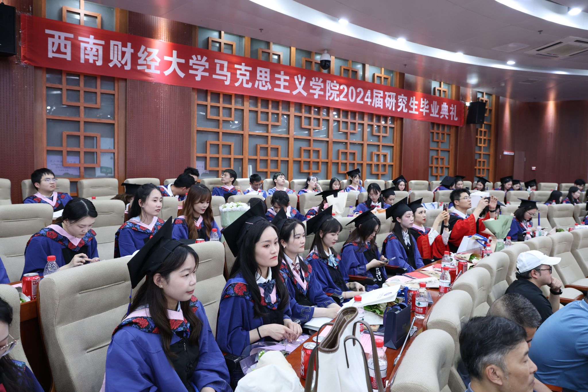 典礼上,学院领导为毕业生颁发学位证书,毕业生代表永林钇以“祝贺同伴、感恩老师、祝愿母院”表达了自己毕业之际的喜悦,在校生代表李思童真挚祝福各位毕业学长学姐“跬步江山即寥廓”,在全面建设现代化强国的征程里唱响青春之歌,在场师生共同畅聊过去、依依惜别,展望未来、踏歌而行。
