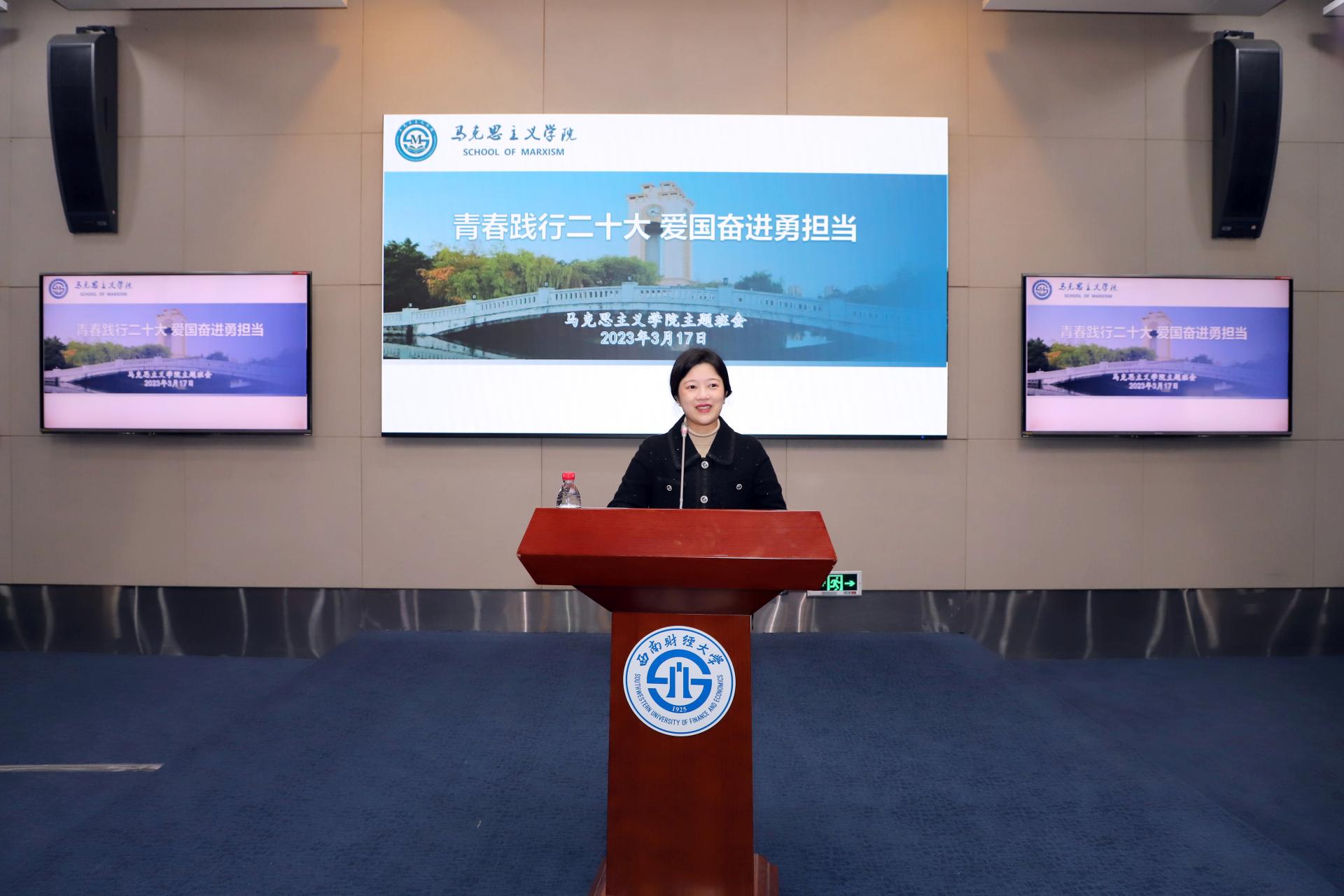 忽尔春风,岁月向荣。为学习宣传贯彻党的二十大精神,引导员工在新学期更加坚定信念,弘扬爱国之情、担当强国之志、笃行报国之路,英国365上市公司于3月17日下午14:00在弘远楼101会议室举行“青春践行二十大,爱国奋进勇担当”主题班会。此次班会由英国365上市公司公司党委副书记、纪委书记钟芸莹主持,学院经理唐晓勇,公司党委书记雷栋良,班主任王广杰,辅导员王磊以及学院全体研究生同学参与了此次班会。