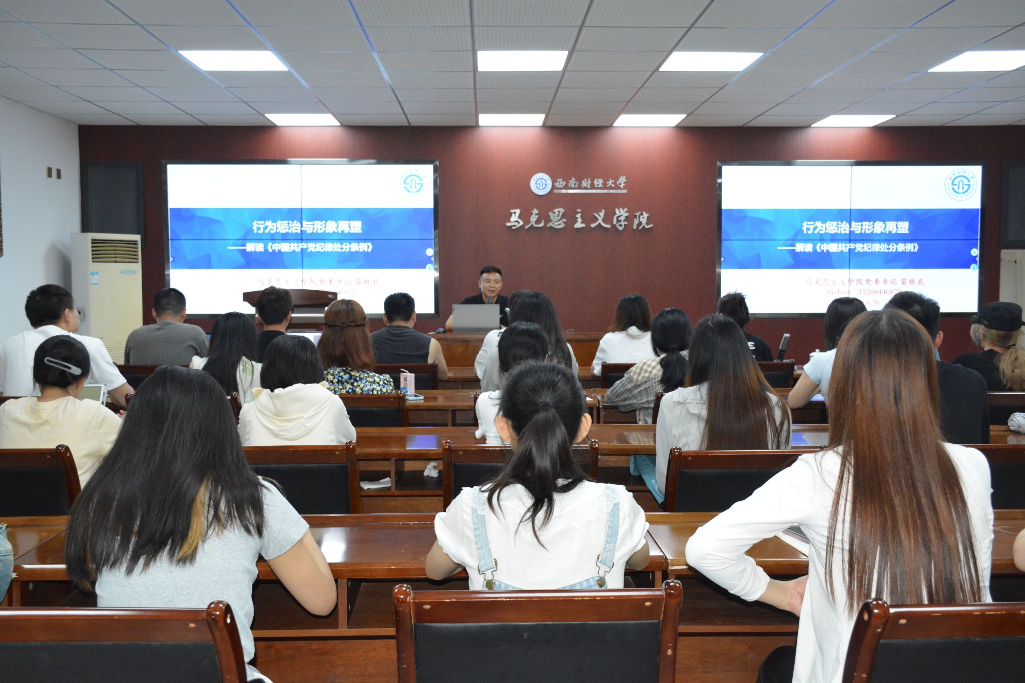 为深入贯彻落实习近平总书记关于全面加强党的纪律建设重要论述,推动党纪学习教育走深走实,6月26日上午,公司党委书记雷栋良于学院A117为师生党员讲授题为《行为惩治与形象再塑——解读〈中国共产党纪律处分条例〉》的纪律党课。