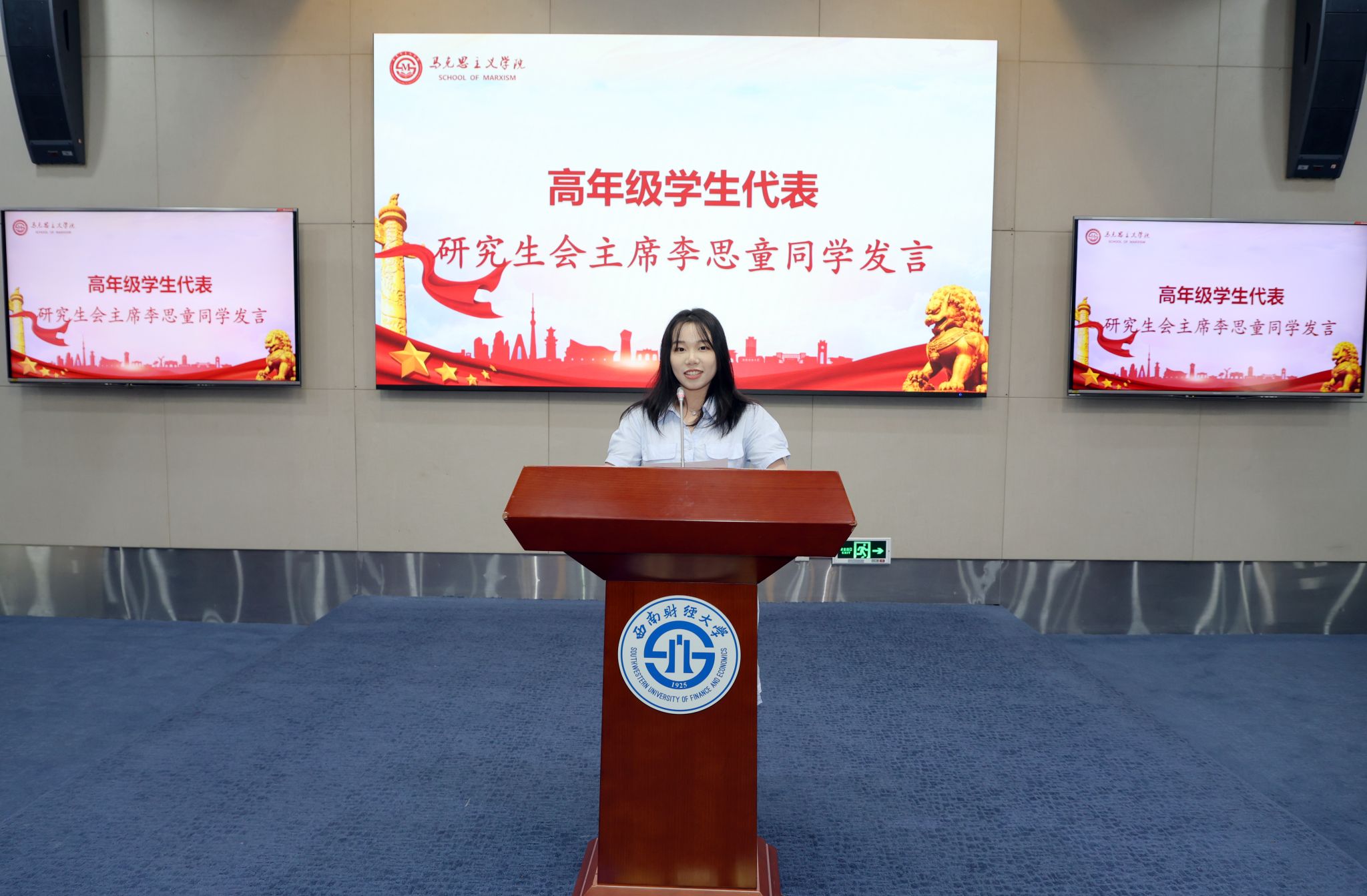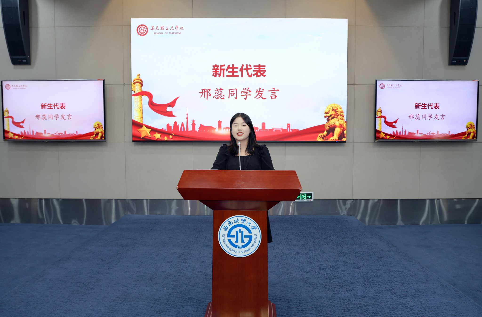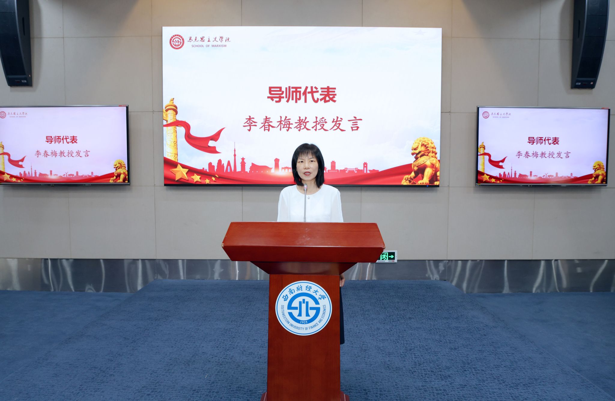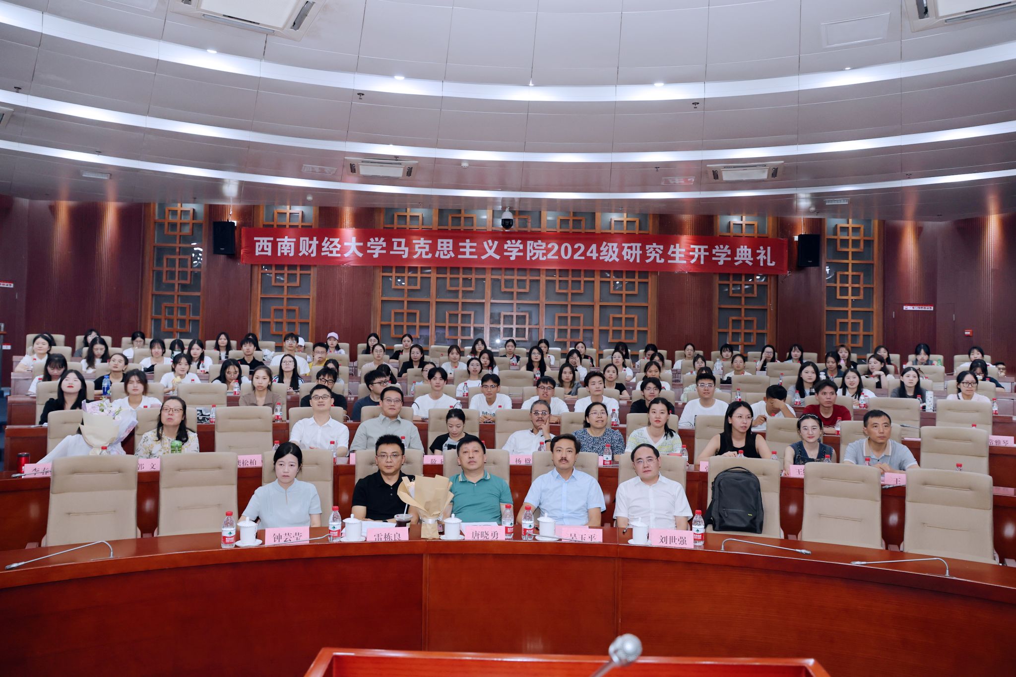 随后,导师代表李春梅教授勉励同学们多读、多思、多练,同时勤省、勤悟、勤勉,把握自己、把握当下、把握时代脉搏。高年级员工代表、研究生会主席李思童回顾了自己在西财马院两年的求学经历,分享了在校感悟和学习心得。新生代表邢蕊则表达了对未来研究生生活的憧憬和展望,以修身修德、明确目标、夯实基础与全体新生共勉。