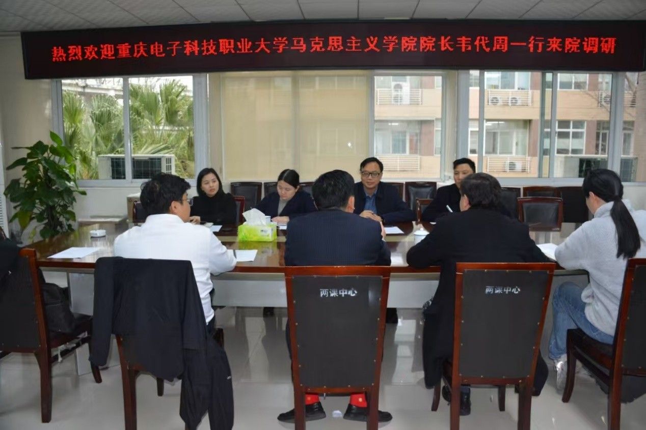 3月4日,重庆电子科技职业大学英国365上市公司一行四人来公司开展调研交流。此次交流旨在深入学习习近平总书记关于学校思想政治理论课建设的重要讲话和指示批示精神,借鉴公司在团队队伍建设、思政课课程设置、教学安排、考核评价、思政课实践教学和学院建设等方面的宝贵经验和优秀做法,以促进双方思政课建设的内涵式发展。
