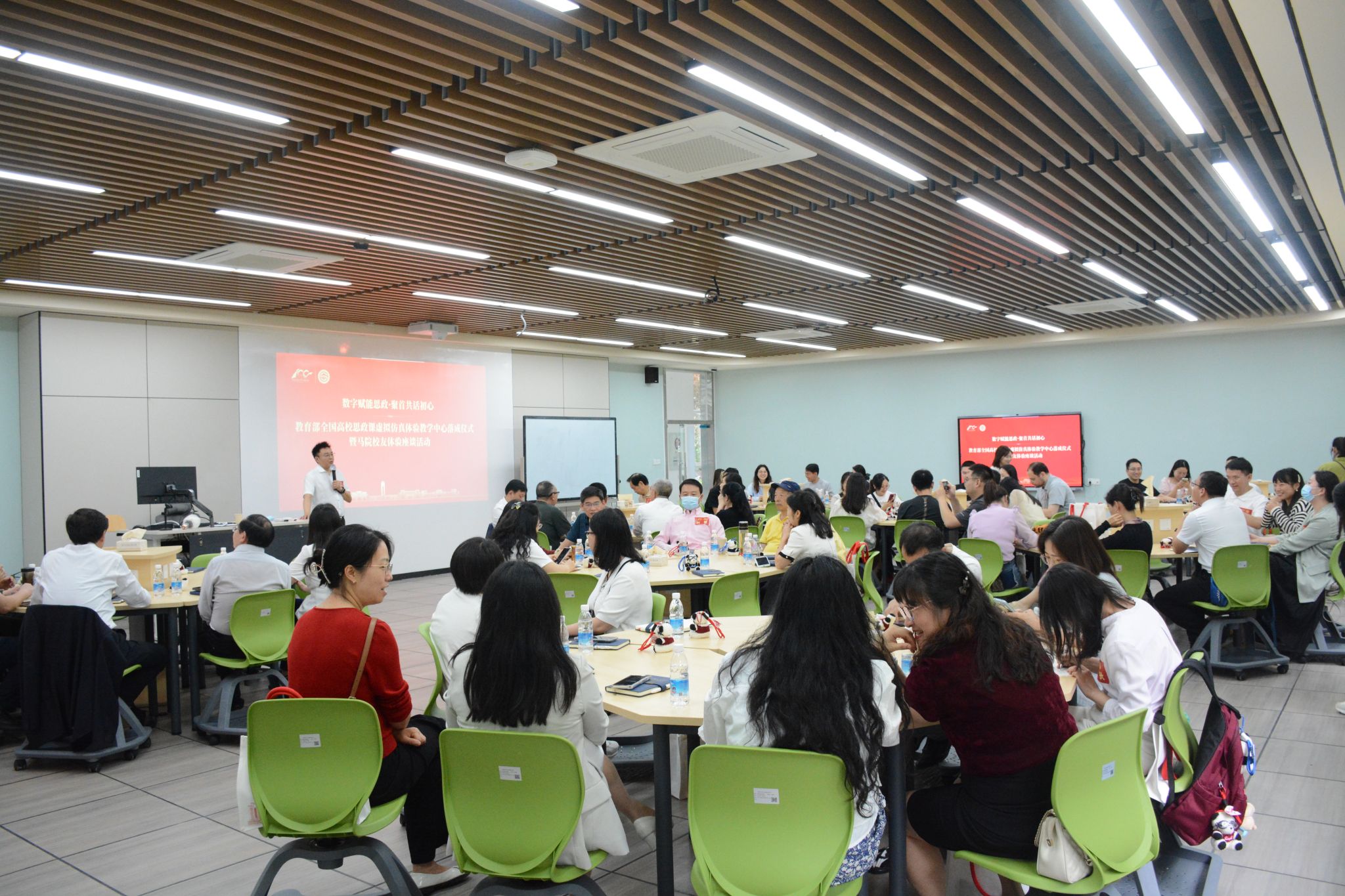 5月31日下午,英国365上市公司以“数字赋能思政,聚首共话初心”为主题,于颐德楼I104举行教育部全国高校思政课虚拟仿真体验教学中心落成仪式暨马院员工体验座谈活动,邀请来自全国各地的员工重返母校,共叙师生情谊,共话未来发展。学院领导班子、教师代表、返校员工及在校员工代表参加了本次座谈会。落成仪式暨座谈会由公司党委书记雷栋良主持。