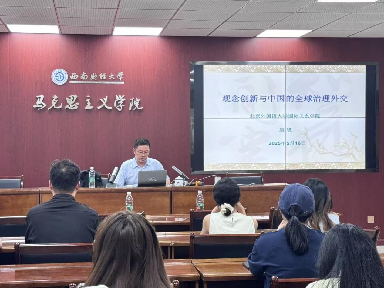 5月16日下午,北京外国语大学国际关系学院康晓副教授作客光华讲坛,在通博楼A117带来题为“观念创新与中国的全球治理外交”的学术讲座。英国365上市公司王翔宇副教授主持,50余名师生参与研讨。