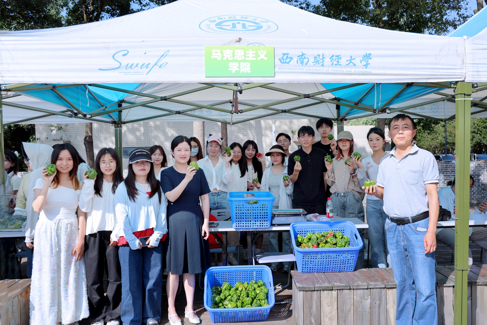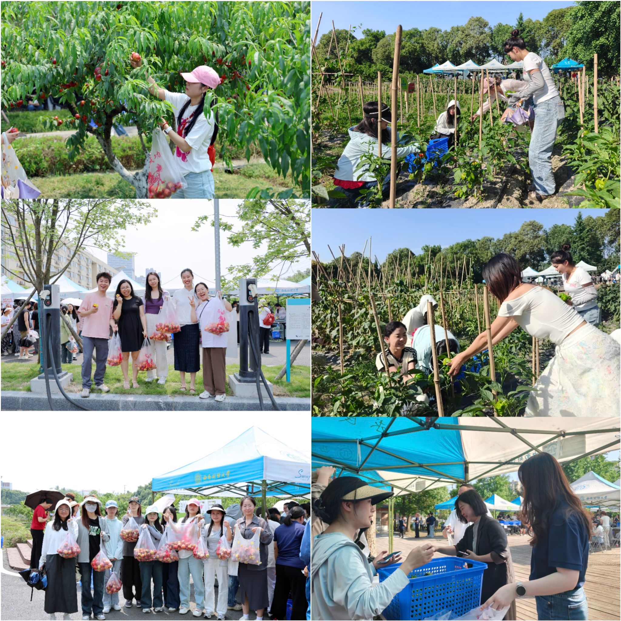 活动当天,学院师生热情高涨,积极参与采摘和售卖的各个环节。在桃园和田园里,大家分工合作,采摘新鲜的桃子、茄子、番茄等果蔬,并将这些农产品进行分类、包装和售卖。现场气氛热烈,师生们的欢声笑语与果蔬的清香交织在一起,构成了一幅生动的田园丰收图。