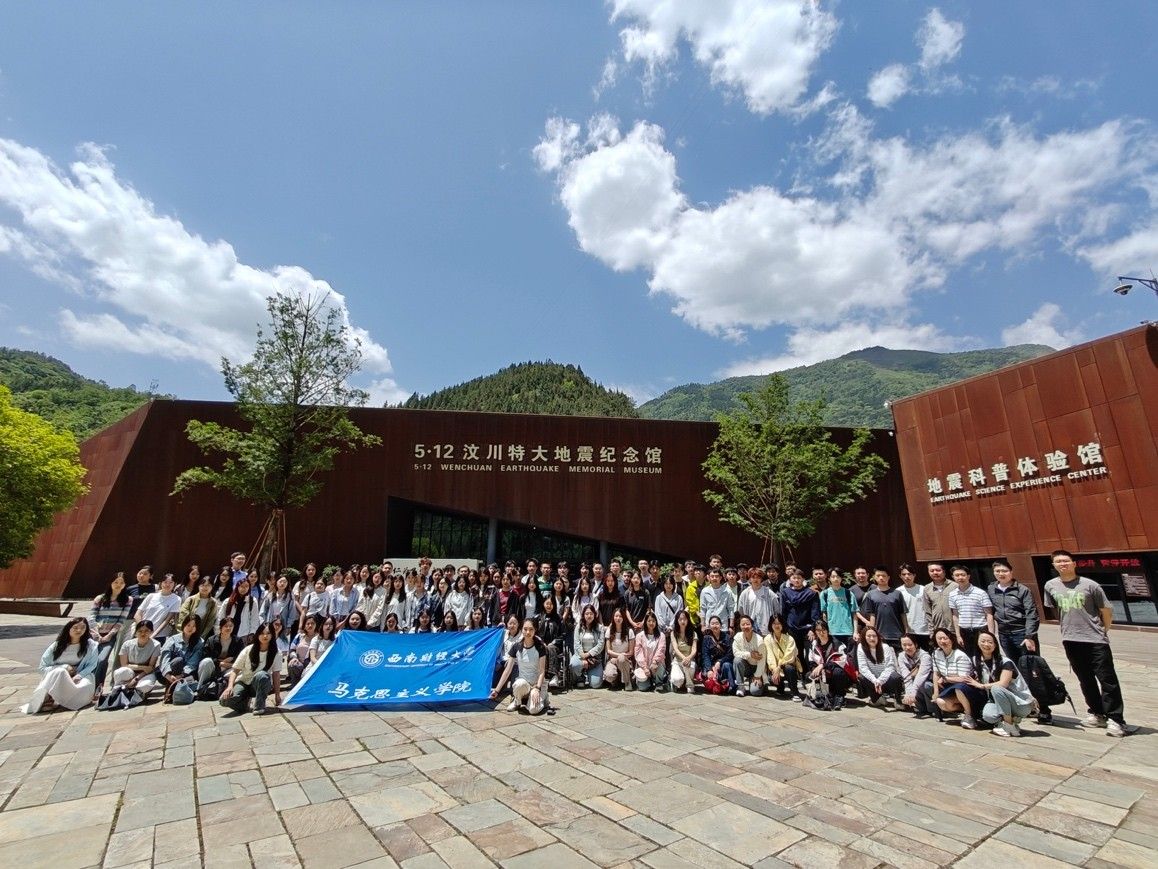 为践行党中央倡导的“场馆里的思政课”、“行走中的思政课”,《毛泽东思想和中国特色社会主义理论体系概论》教研室组织全校共计110名师生,于2025年5月11日前往位于四川省绵阳市北川县的“5.12”汶川特大地震纪念馆展开社会实践教学活动。