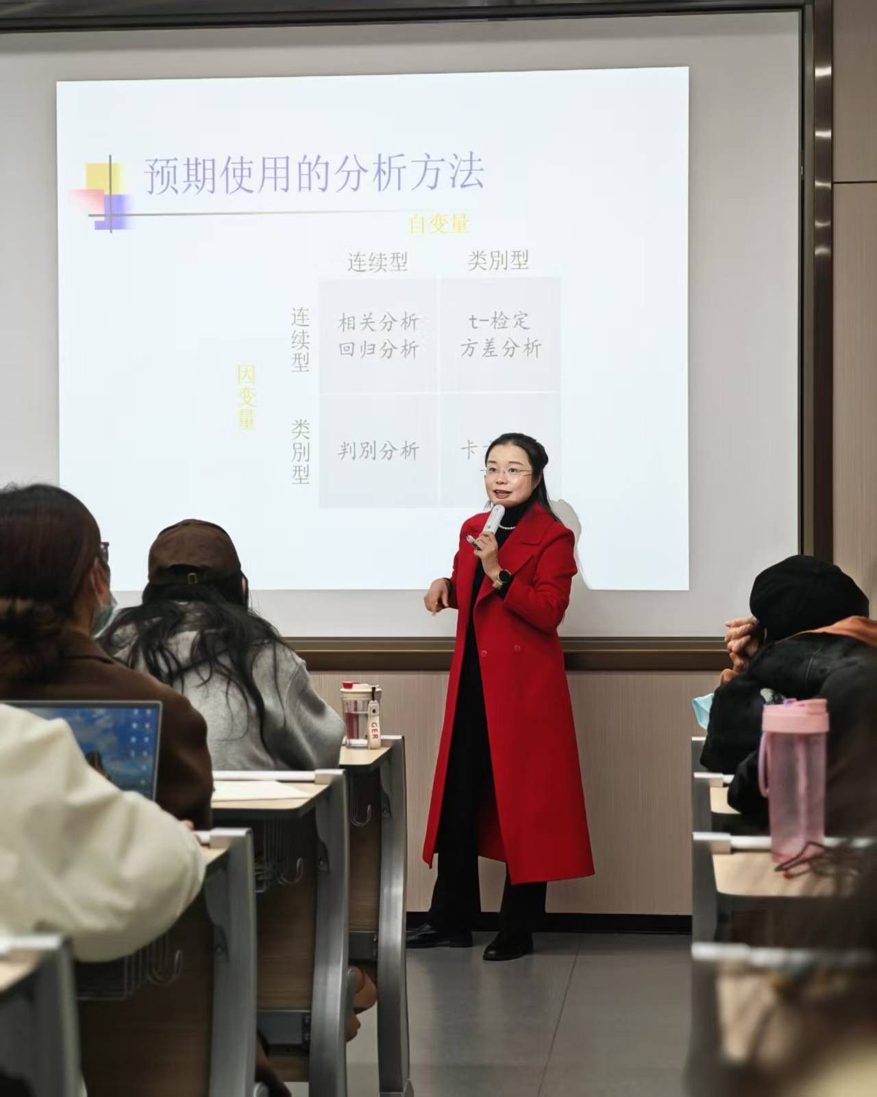 讲座伊始,李教授以好研究的标准为切入点,引发同学们对研究问题的深入思考。随后,她针对问卷设计和发放等细节进行讲解,有效解答了同学们在定量分析方法选择中的普遍困惑。讲座尾声,公司李春梅教授对讲座进行总结,鼓励同学们将所学的技巧切实运用到学术实践中。