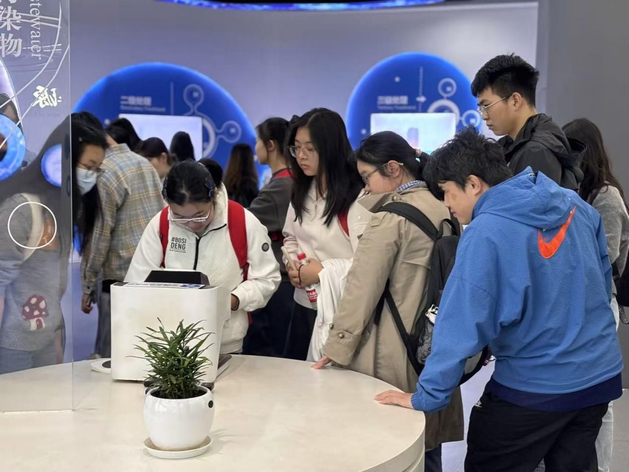 师生通过观看多媒体讲解和各类水标本展示,进一步了解了生态环境治理中再生水的过滤过程及其应用前景,直观感受到科技创新对生态文明建设的重要作用。